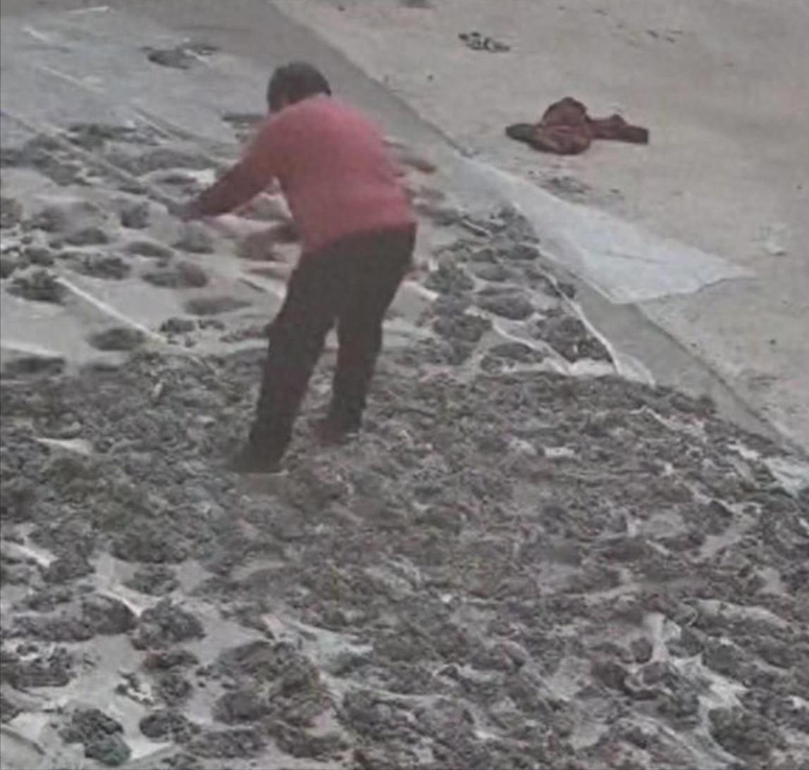 接下来的三个多小时,她麻利地挥动锄头,在未干透的水泥面上留下一个个触目惊心的深坑。