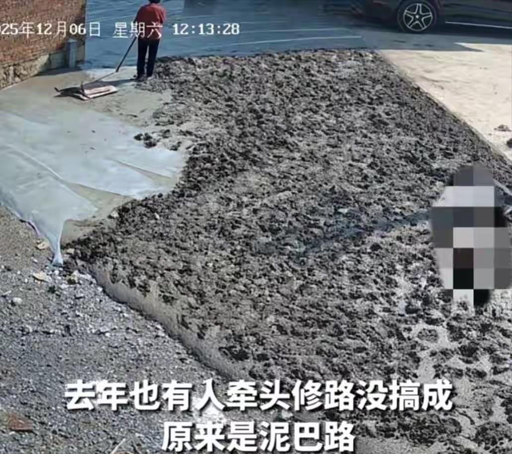 湖南邵阳新宁县一个小山村里,刚铺好的水泥路面还泛着新鲜的灰白色,就被一把锄头硬生生凿得千疮百孔。