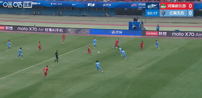 第30分钟,玉昆后防张宸梁停球失误送礼,古斯塔沃断球直塞,姆布拉前插突入禁区小角度推射破门!河南队主场1比0领先!